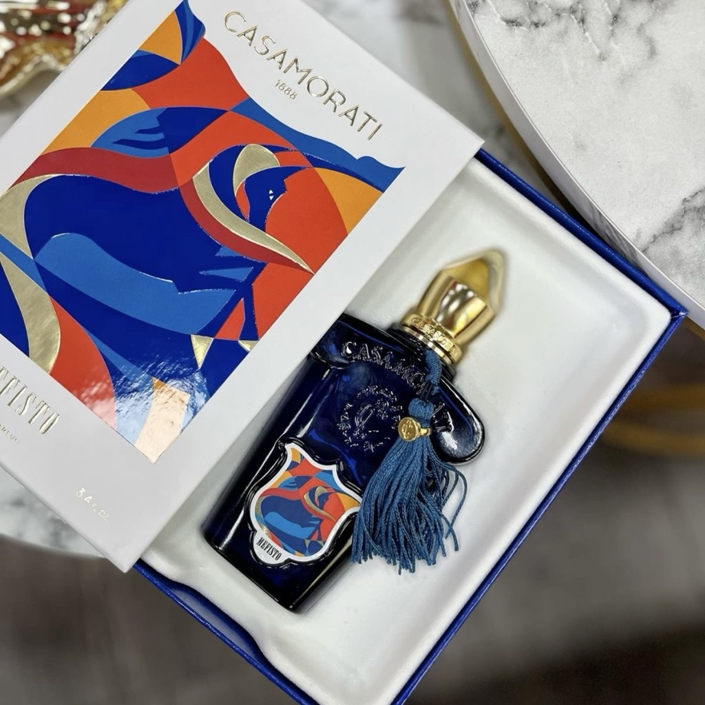 کازاموراتی مفیستو -Xerjoff Casamorati Mefisto محصولی با رایحه ی مرکباتی که در سال 2009 طراحی و به دنیای عطر و ادکلن معرفی گردید. این محصول مردانه با رایحهی خنک و چوبی، مناسب برای استفاده در روزهای نیمه ی اول سال میباشد. از ویژگیهای بارز عطر ادکلن مردانه کازاموراتی زرژاف مفیستو، طراحی فوقالعادهی فلانکر این عطر میباشد به گونهای که در اولین نگاه چشم بیننده را به سمت خود خیره کرده و نگاهها را به خود جلب مینماید. دارای سیلیج سنگین و با ماندگاری بسیار بالا که دال بر بالا بودن کیفیت عطر ادکلن مردانه کازاموراتی زرژاف مفیستو میباشد . عطر ادکلن مردانه کازاموراتی زرژاف مفیستو از ترکیبات مرکباتی بالا و ترکیبات چوبی ملایمی برخوردار بوده که در نهایت عطر ادکلن مردانه کازاموراتی زرژاف مفیستو را تبدیل به عطری کلاسیک، که میتوان از آن در هر زمان و مکانی بهره برد، نموده است. برخی از منتقدان رایحهی این محصول را مشابه عطر ادکلن مردانه کرید سیلور مانتین واتر میدانند.