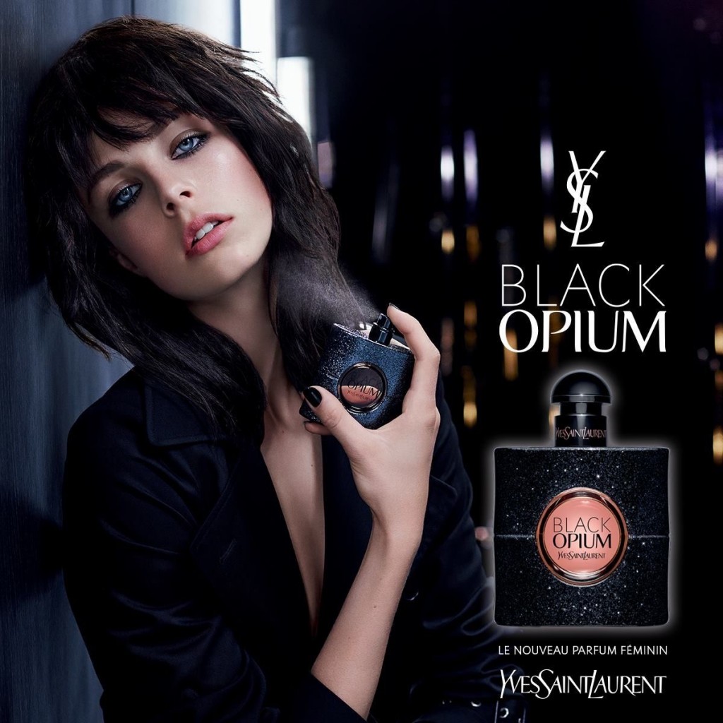 ، محصولی کلاسیک با هایلایت هایی از آکوردهای تلخ و ترکیبی جادویی انتخاب بینظیری برای شبهای سرد زمستانی میباشد. ترکیب آن شامل نتهای تلخی از قهوه، تندی فلفل صورتی، شیرینی گل یاس و گلابی و گرمای وانیل است که بر روی بیسی از نعناع هندی و سدر استوارند. از مشخصههای ممتاز آن رایحهی غالب وانیل و ترکیب آن با تلخی قهوه، ماندگاری بسیار بالا و میزان پراکنندگی عالی آن میباشد. بطری این عطر در نگاه اول شبیه به نسخهی اصلی خودش یعنی بله دی اپیوم بوده با این تفاوت که اینبار در آن از رنگ مشکی با ظاهری پولک دوزی شده به شکل سنگ گلام بهره گرفته شده است . چهره ی تبلیغاتی عطر ادکلن زنانه ایو سن لورن بلک اپیوم را مدل بریتانیایی ادی کمپبل که توسط عکاسی دانیل ولف تصویر نگاری شده ، بر عهده گرفته است.