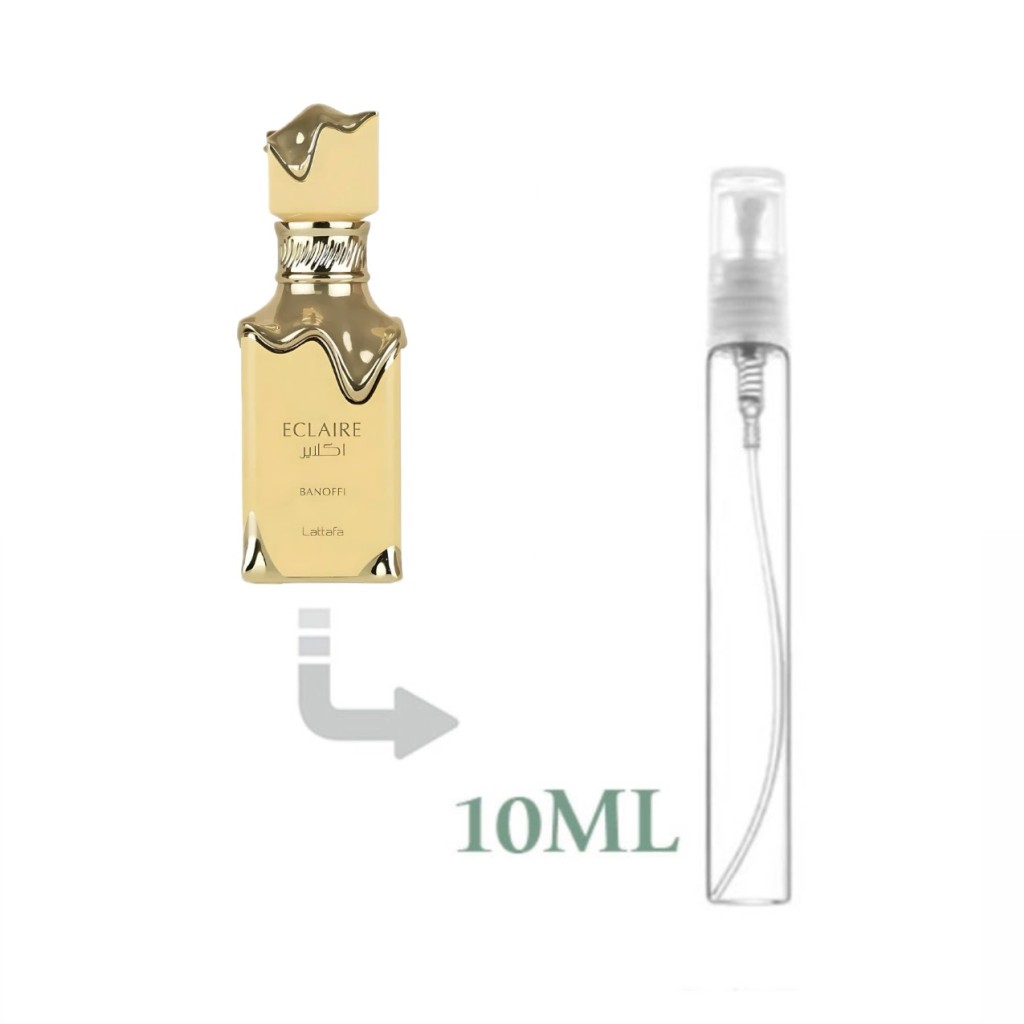 ادکلن اکلایر لطافه بانوفی - Eclaire Banoffi لطافه عطری جدید از شرکت لطافه است که در سال 2025 عرضه شد. ترکیبی شیرین از کرم موز ، کارامل و تافی یک عطر خوشبو و وسوسهانگیز که از ترکیب دسر محبوب Banoffee Pie الهام گرفته؛ ترکیبی از موز، کارامل، خامه و شکلات که رایحهای دلفریب و خوراکی خلق کرده و بهمحض اسپری، حال و هوای شیرین و گرمش رو تو فضا پخش میکنه. اکلایر بانوفی عطری گرم، شیرین و گورمانده؛ یعنی از اون بوهای خوراکی و جذابه که آدم رو یاد بوی کیک و دسر تازه درمیاره. برای فصل پاییز و زمستون عالیه و بوی اون حس دنج، دلگرم و دلپذیری بهت میده در یک کلام این عطر بوی عطر تمام آدم هایی که اطراف شما هستند را کاور می کند. حداقل دو روز روی لباس ماندگاری دارد. رد بو و پخش بوی بی نظیر.